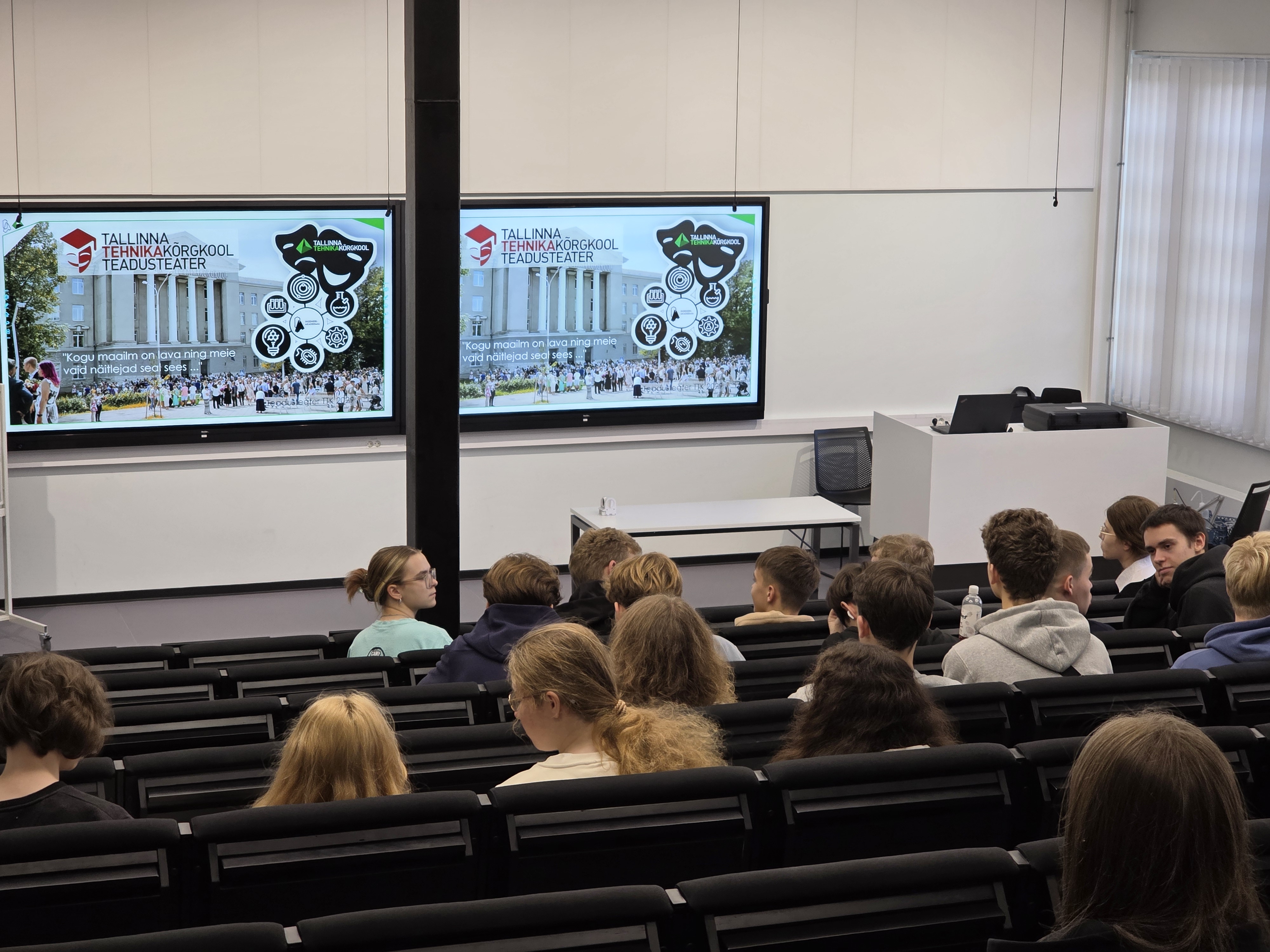 Maardu Gümnaasiumi 10-11. klasside õpilased osalesid Tallinna Tehnikakõrgkooli teadusteatris. Tegemist oli kahetunnilise üritusega, kus visuaalsed eksperimendid, praktilised tegevused ja väiksed katsed tõid õpilasteni inseneriteaduse, füüsika, keemia ja roheenergia võlud. Õpilased lõid kaasa katsetes ning kogesid, kuidas teadus ja inseneeria ellu ärkasid. Lisaks jagati informatsiooni õppimisvõimaluste kohta Tallinna Tehnikakõrgkoolis.